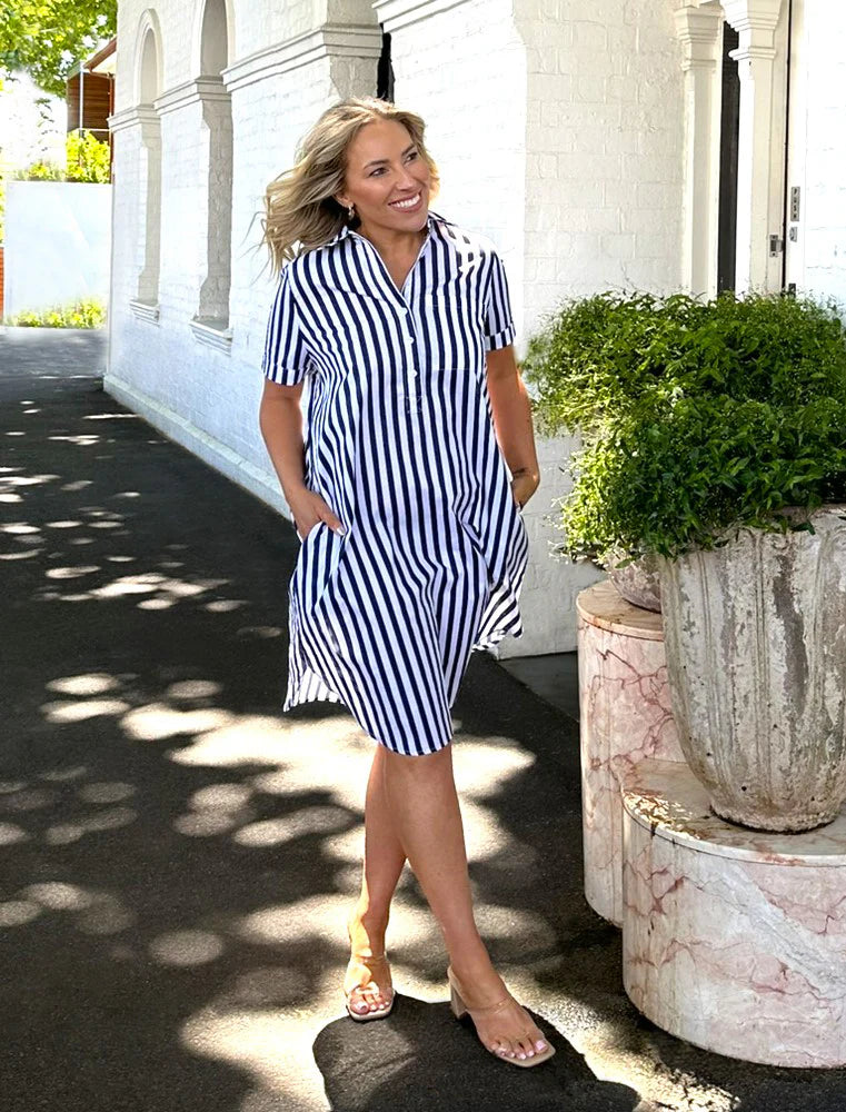 Karina Shirt Dress - Navy/White