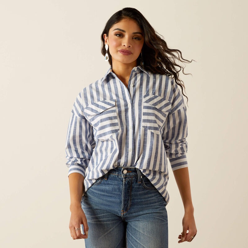 Ariat Ladies Baggy Button Up L.S Shirt - Coastal Stripe