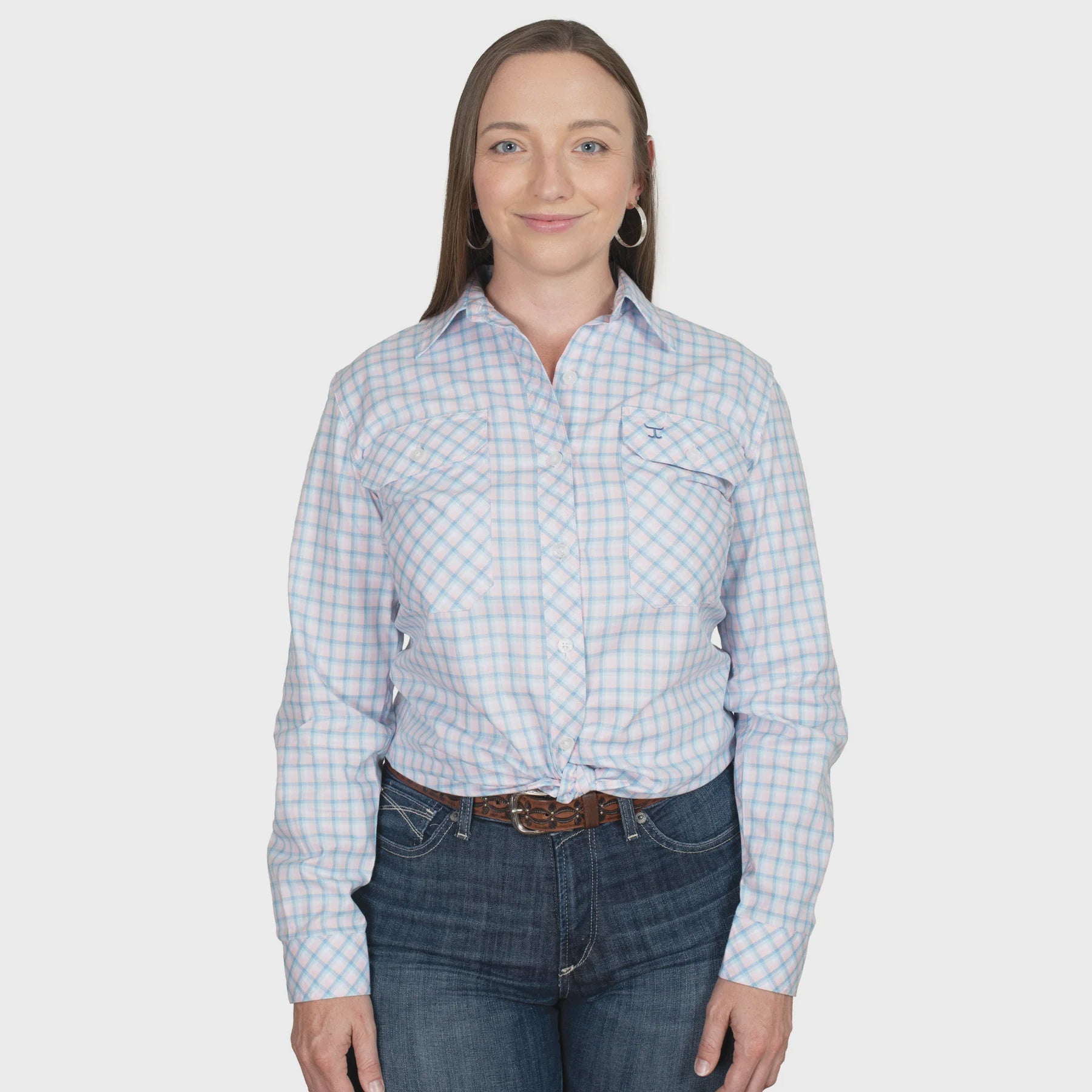 Just Country Abbey Full Button L.S Shirt - Blue/Light Pink Plaid
