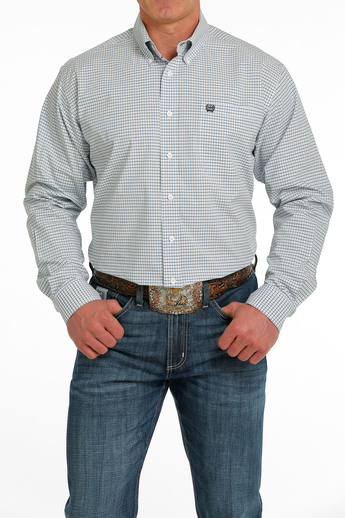 Cinch Men's Plaid Full Button L.S Shirt - White/Blue